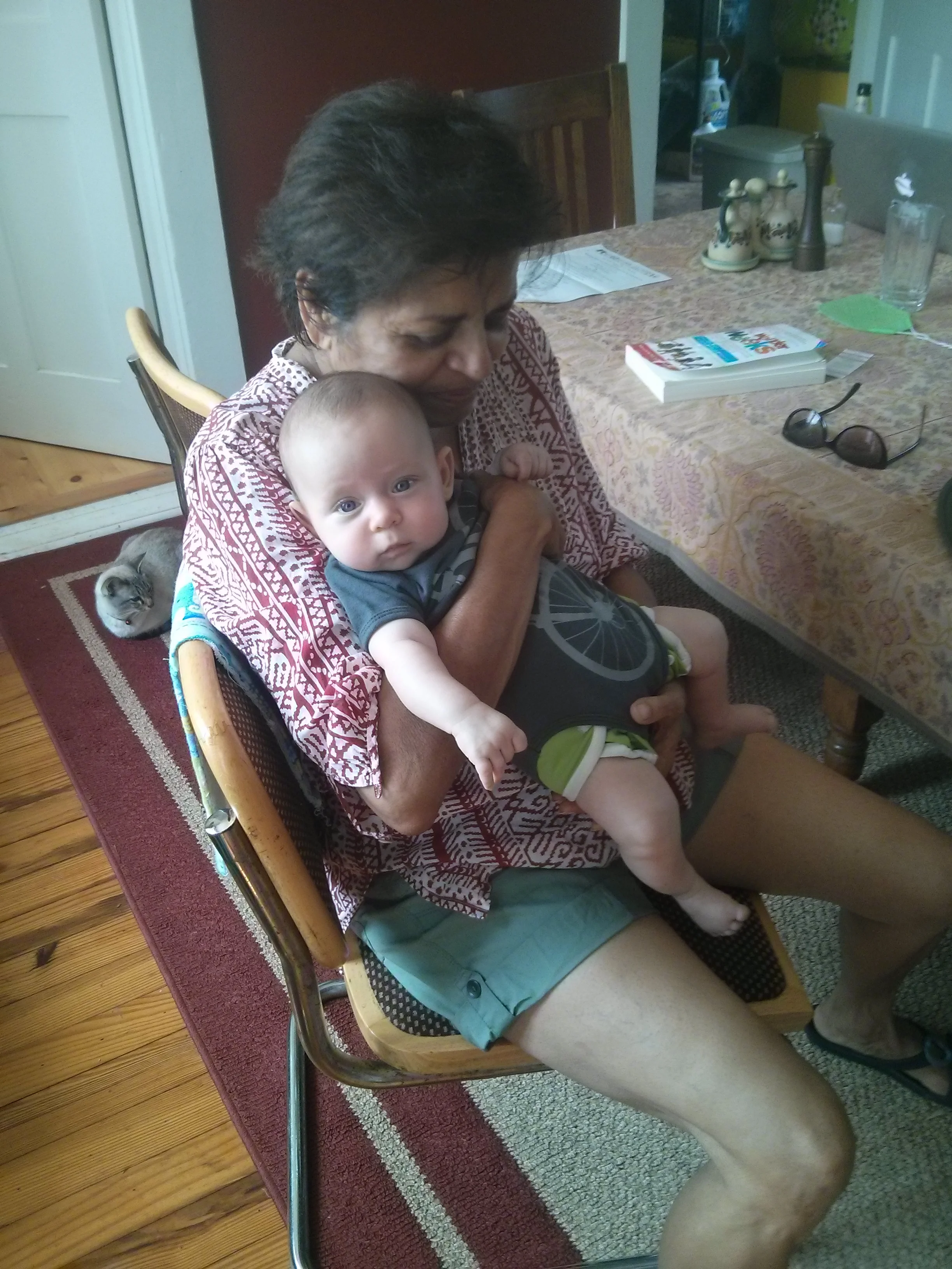 Dress by great-grandma Ben, swaddle by Grandma G.